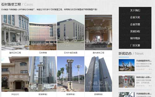 網(wǎng)站優(yōu)化“石雕廠/石材雕塑/不銹鋼雕塑”網(wǎng)站由環(huán)宇網(wǎng)絡(luò)重新按優(yōu)化標(biāo)準(zhǔn)重新制作,并由我司優(yōu)化該企業(yè)產(chǎn)品核心關(guān)鍵詞“石雕廠/石材雕塑/不銹鋼雕塑”排名已經(jīng)達(dá)標(biāo)搜索引擎首頁(yè),助力企業(yè)“北京中銘盛世石業(yè)有限公司”互聯(lián)網(wǎng)發(fā)展...