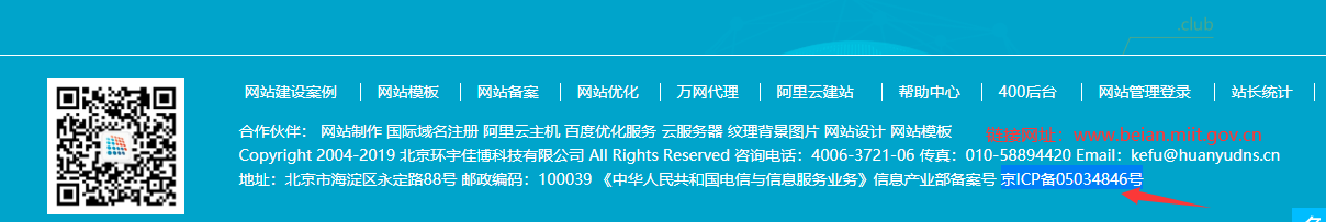 因各個(gè)網(wǎng)站的搭建方式不同,此處不介紹網(wǎng)站添加備案號的具體操作步驟,需網(wǎng)站技術(shù)負(fù)責(zé)人自行添加。如果您使用的環(huán)宇網(wǎng)絡(luò)智能建站系統(tǒng),您可參考下面鏈接添加ICP備案號添加。如果未在網(wǎng)站底部添加備案號,被相關(guān)部門核查出來將處以五千元以上一萬元以下罰款。以下以環(huán)宇網(wǎng)絡(luò)PC端官網(wǎng)為例,示例:網(wǎng)站添加備案號后的效果。