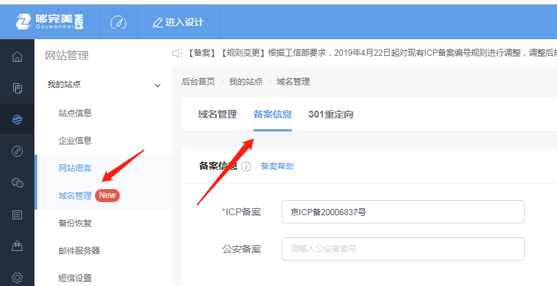 根據(jù)工信部要求,2019年4月22日起對現(xiàn)有ICP備案編號規(guī)則進行調(diào)整,調(diào)整后規(guī)則為:一個域名對應(yīng)一個備案編號(即:網(wǎng)站備案號)