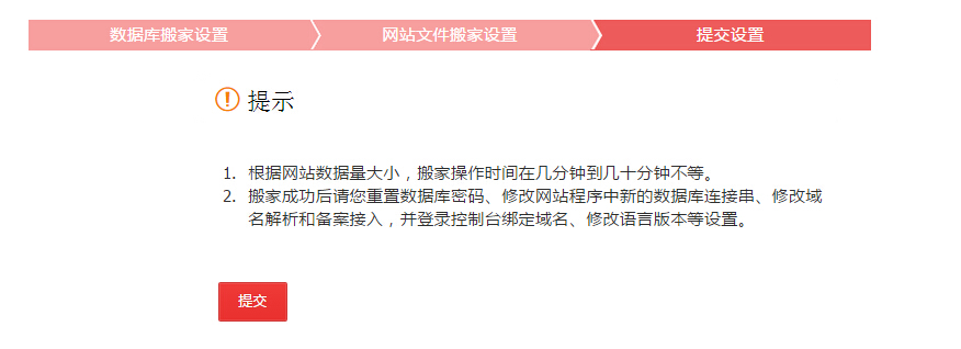 單擊 提交 后任務(wù)開始執(zhí)行,如果是虛擬主機(jī)則會排隊(duì)執(zhí)行,一臺服務(wù)器只有一個(gè)搬家任務(wù)執(zhí)行。