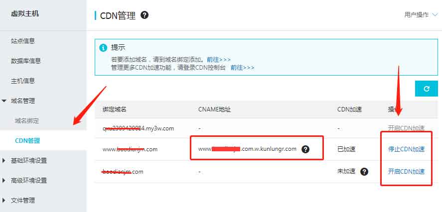 虛擬主機(jī)免費(fèi)開啟CDN方法,登錄主機(jī)控制面板,點(diǎn)域名管理-CDN管理-開啟CDN加速,待幾分鐘后控制面板將生成CNAME地址,此地址為CDN加速解析地址...