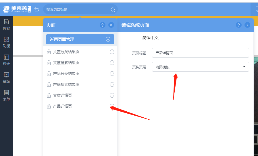 企業(yè)網(wǎng)站在設(shè)計(jì)制作時(shí),發(fā)現(xiàn)某些頁面無頭尾時(shí),給它帶上“帽”就正常了! 就找到對應(yīng)的頁面點(diǎn)設(shè)置-給它選擇一個(gè)“頭尾模板”,建議每個(gè)頁面都要檢查并選擇設(shè)置一個(gè)頭尾模板,如產(chǎn)品或文章詳情頁,多篇文章或多個(gè)產(chǎn)品,共享一個(gè)詳情頁,只要在對應(yīng)的詳情頁設(shè)置頭尾模板就可以了,如下所示: