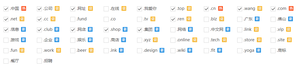 2、常用中文網(wǎng)址類型與價格